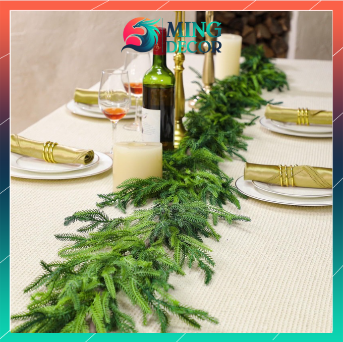 🎄 Dây Thông Giả Trang Trí Noel PE Dài 2m7 + Có Đèn – Trang Trí Cửa, Cầu Thang, Lò Sưởi, Bàn Tiệc Sang Trọng
