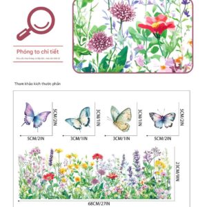 Trang trí chân tường sống động với decal hoa dại phối bướm in 3D sắc nét, màu sắc tươi sáng, dễ phối hợp không gian.