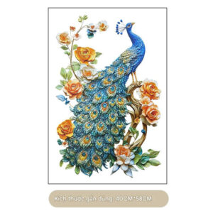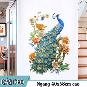 Decal dán tường chim công xanh 3D rực rỡ, sang trọng, mang ý nghĩa may mắn – dễ dán, không bong tróc, hình ảnh nổi bật.