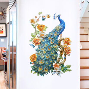 Decal Dán Tường Chim Công Xanh 3D Sắc Nét – Trang Trí Phòng Sang Trọng