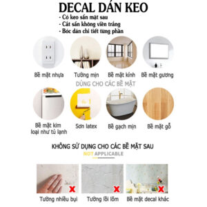 Nên dán lên bề mặt nhẵn như tường sơn phẳng, kính, gạch men để decal phát huy độ bám dính tốt nhất.
