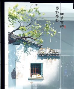 🐾 Chủ đề thư giãn – Tái hiện khung cảnh yên bình với mèo, cây xanh và mái nhà cổ kính.