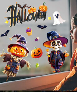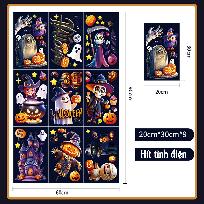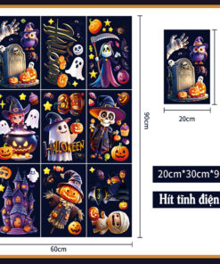 Decal Halloween 2025 Hít Tĩnh Điện – Phù Thủy, Bí Ngô, Ma Quái Dễ Thương Trang Trí Cửa Kính