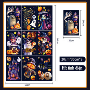 Sản phẩm được làm từ chất liệu nhựa PVC cao cấp, hít tĩnh điện trên bề mặt kính, gạch men mà không cần keo dán, không để lại vết bẩn khi tháo gỡ. Đây chính là lựa chọn lý tưởng để trang trí cửa kính, cửa hàng, quán cà phê, văn phòng và gia đình trong mùa Halloween 2025.