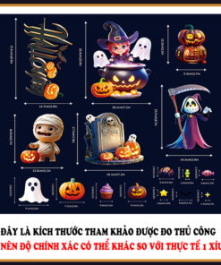 🎃 Thiết kế đa dạng: Bộ decal gồm nhiều nhân vật Halloween quen thuộc như phù thủy, ma dễ thương, bí ngô, lâu đài ma ám, dơi, nhện, xác ướp… phù hợp trang trí cả cho trẻ em lẫn người lớn.