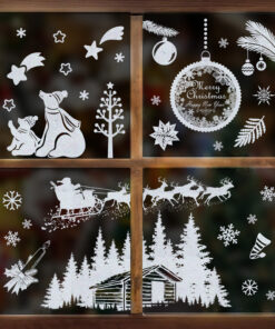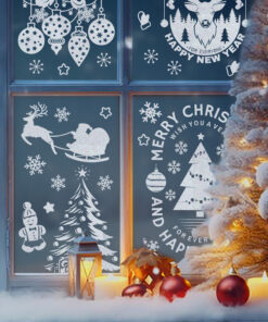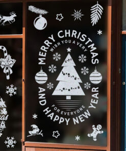 Với thiết kế gồm các họa tiết nổi bật như cây thông Noel, ông già Noel, tuần lộc, bông tuyết, quả châu, ngôi nhà tuyết, bộ decal này vừa mang phong cách hiện đại vừa giữ được nét truyền thống của mùa Giáng Sinh.