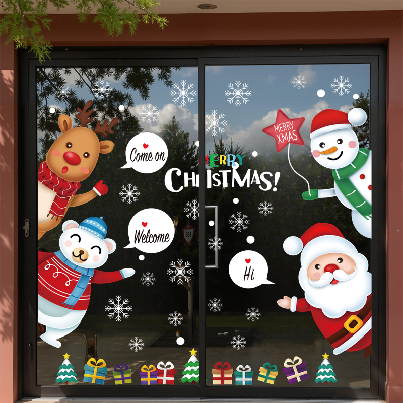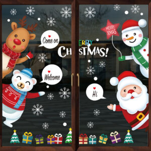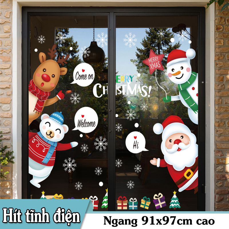 Decal Noel 45×60 với Ông Già Noel – Người Tuyết – Tuần Lộc đáng yêu, hít tĩnh điện dễ dán – không keo. Trang trí cửa kính shop, café, nhà ở đẹp nổi bật mùa Giáng Sinh.
