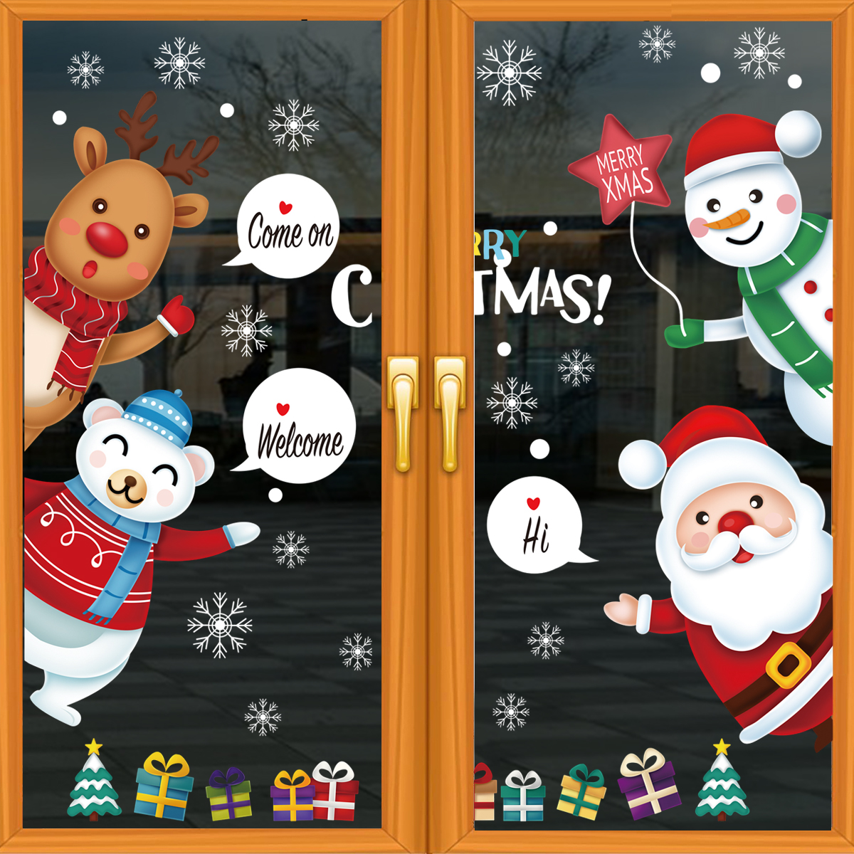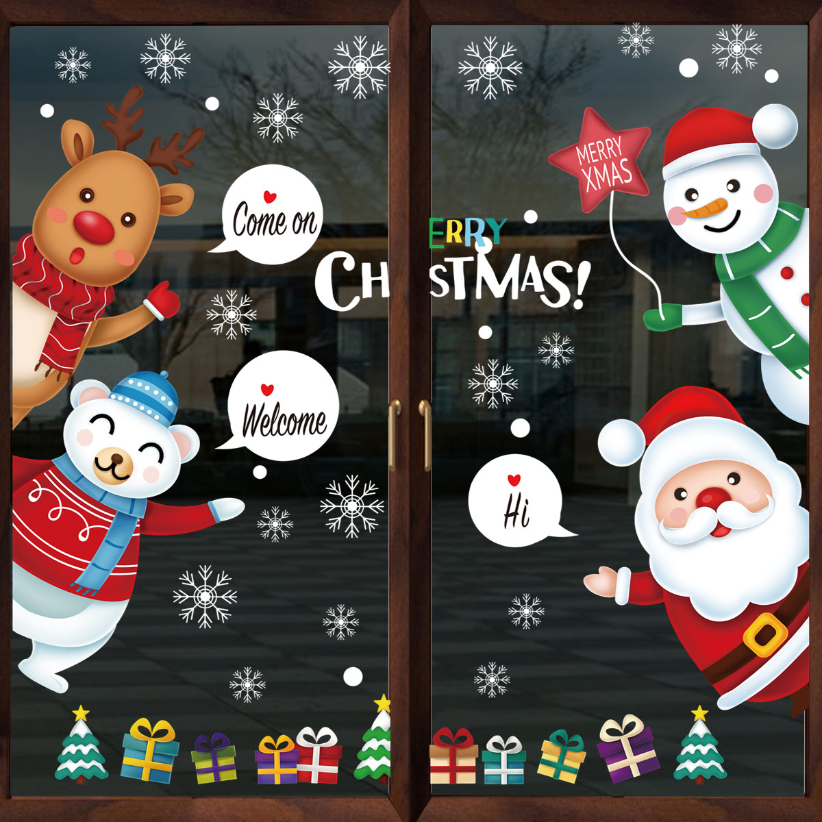 Mẫu Decal Noel Combo Nhân Vật – Khổ 45×60cm là lựa chọn lý tưởng để biến cửa kính thành góc trang trí Giáng Sinh thật ấn tượng. Từ cửa hàng đến không gian gia đình, mẫu decal này giúp không khí trở nên ấm áp, vui vẻ và rực rỡ hơn bao giờ hết.
