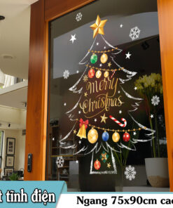Decal Noel 2026 cây thông Merry Christmas hít tĩnh điện khổ 50×70, thiết kế sang trọng – dễ dán – bền màu, giúp cửa hàng & nhà ở nổi bật mùa Giáng Sinh nhà MingDecor