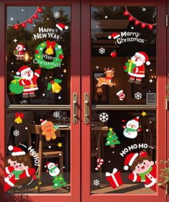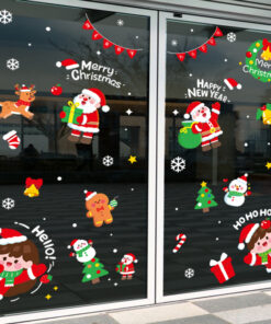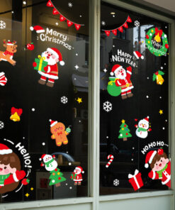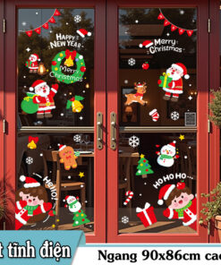Decal Noel 2026 cute Santa – snowman – tuần lộc – bé Noel khổ 50×70, hít tĩnh điện dễ dán, bám chắc không keo. Trang trí cửa kính đẹp cho cửa hàng & gia đình.