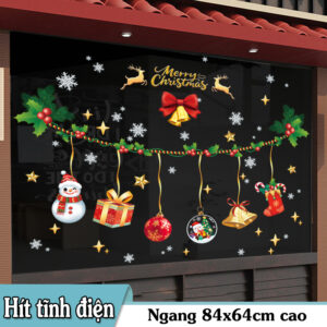 🎄 Decal Noel 2026 Dây Treo Chuông – Người Tuyết – Hít Tĩnh Điện – Khổ 45×60 | Trang Trí Cửa Kính Cực Đẹp