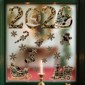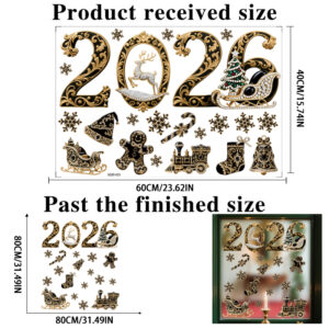 🎄 Decal Noel 2026 Đen Vàng Hoàng Gia – Hít Tĩnh Điện Cao Cấp, Chữ 2026 Hoạ Tiết Baroque – Đính Kim Sa Sang Trọng