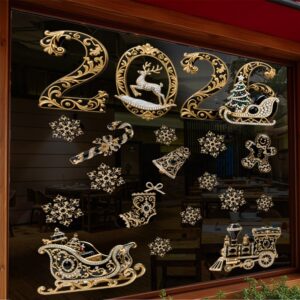 Hoa văn uốn lượn, mạ vàng và họa tiết đính đá cho cảm giác sang trọng, quý phái – rất hiếm gặp trong các mẫu decal Noel thông thường.