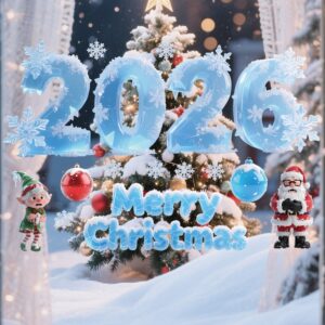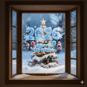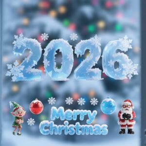 ❄️ Decal Noel 2026 Hít Tĩnh Điện – Chữ 2026 Hiệu Ứng Băng Tuyết, Merry Christmas & Nhân Vật Noel Dễ Thương