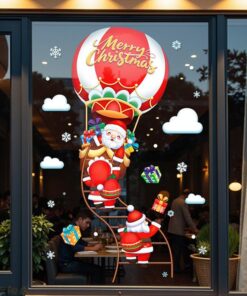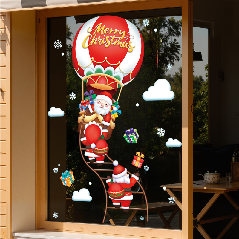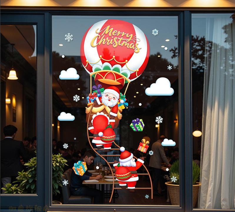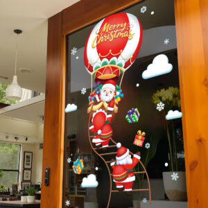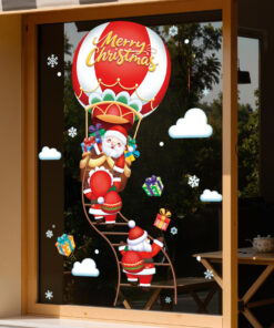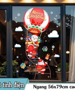 Điểm nổi bật nhất của mẫu decal này là hình Ông Già Noel bay trên khinh khí cầu, mang theo đầy quà tặng và niềm vui Giáng Sinh. Hình ảnh tươi sáng, vui nhộn nhưng vẫn giữ được vẻ đẹp tinh tế giúp cửa kính: