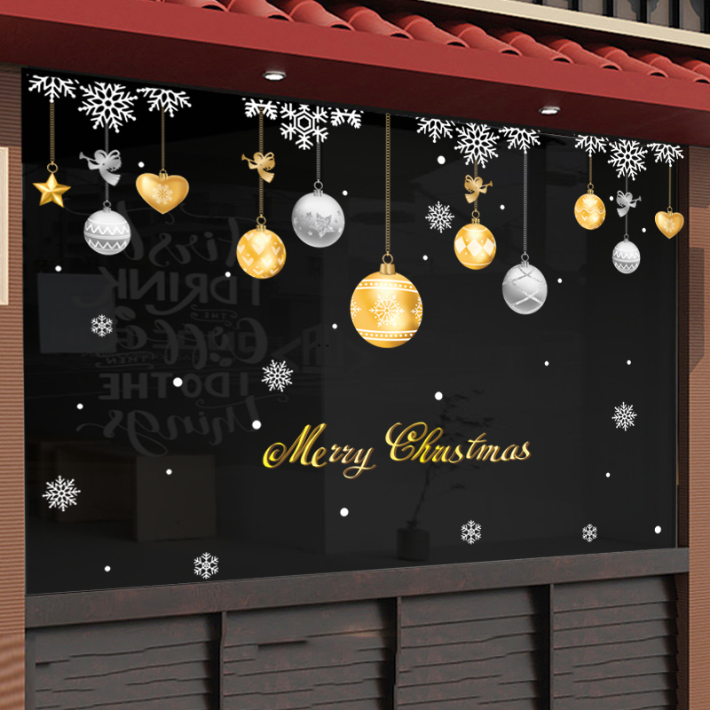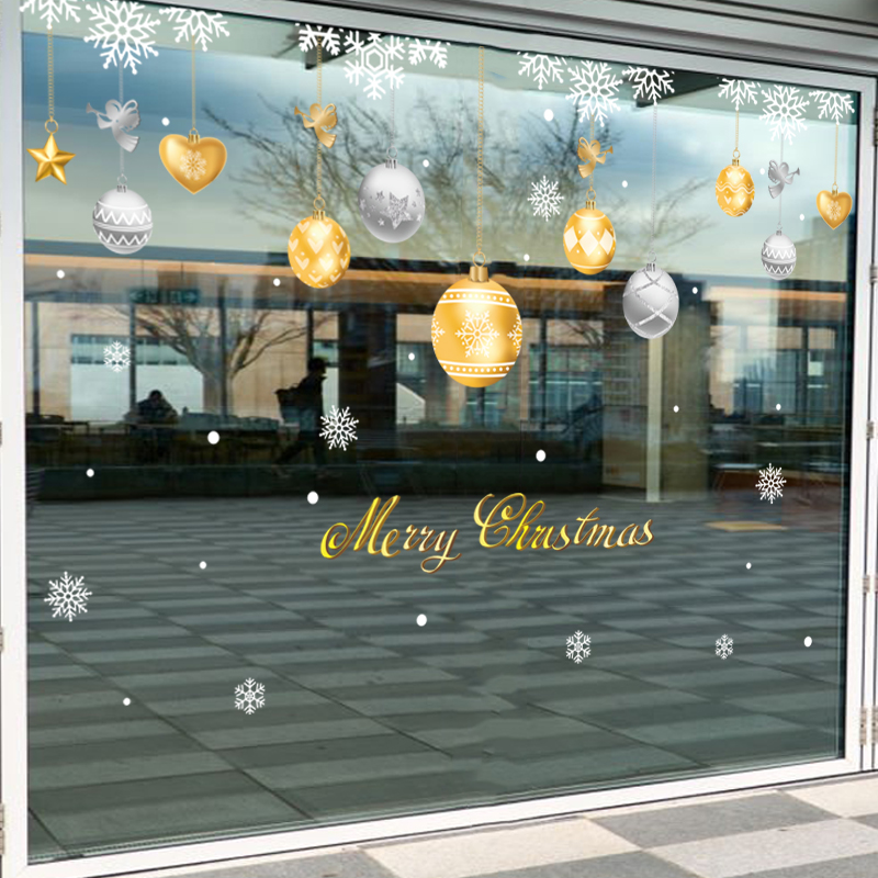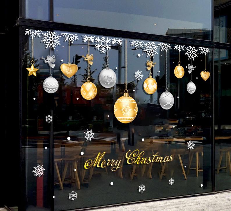 Decal Noel 2026 quả châu vàng bạc sang trọng, chữ Merry Christmas cao cấp, hít tĩnh điện dễ dán – khổ 45x60cm. Trang trí cửa kính cực đẹp tại MingDecor.