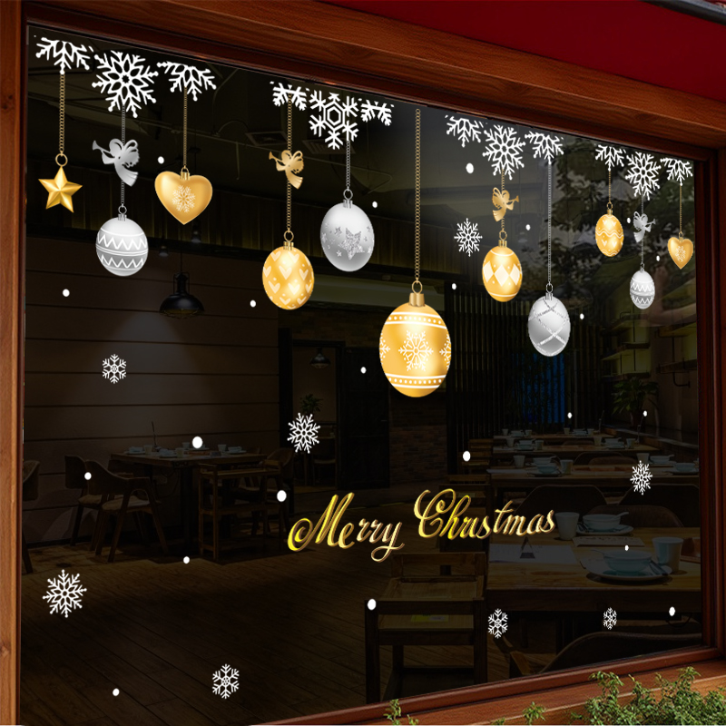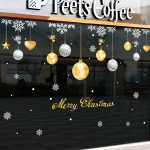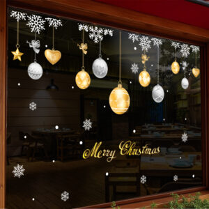 Tone màu vàng – bạc mang phong cách Châu Âu, dễ phối với mọi kiểu trang trí Giáng Sinh khác: đèn led trắng, dây thông giả, hộp quà hoặc tiểu cảnh Noel. Nhờ chất liệu hít tĩnh điện không keo, sản phẩm dán lên kính rất đẹp, không lem keo, không bong mép và có thể tái sử dụng nhiều mùa.