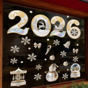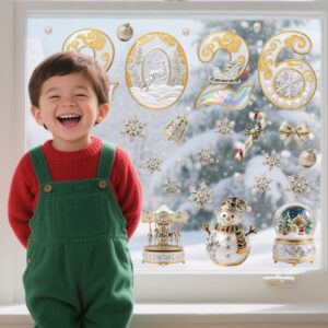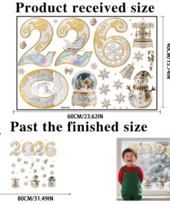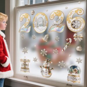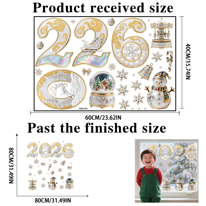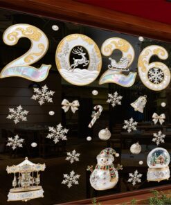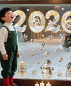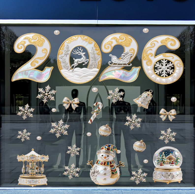 🎄 Decal Noel 2026 Sang Trọng – Hít Tĩnh Điện, Chữ 2026 Ngọc Trai – Vàng – Hiệu Ứng Ngọc Opal tại MingDecor