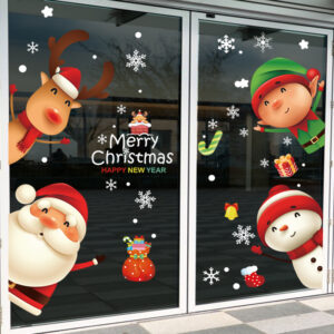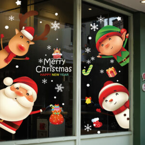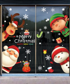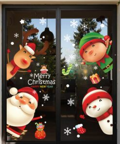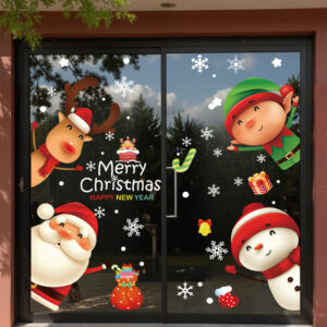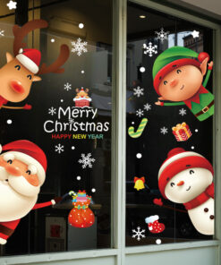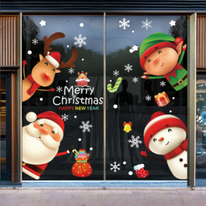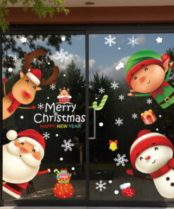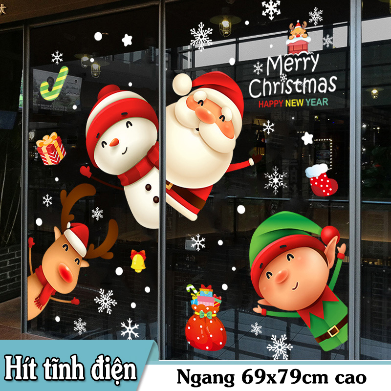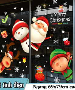 Decal Noel 2026 snowman – ông già Noel – tuần lộc – yêu tinh khổ 50×70, hít tĩnh điện dễ dán, bám chắc không keo. Trang trí cửa kính đẹp cho cửa hàng & gia đình.
