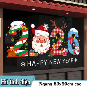 🎄 Decal Noel 2026 Số 2026 Hoạt Hình & Ông Già Noel | Hít Tĩnh Điện Khổ 30×50 | Trang Trí Cửa Kính Giáng Sinh Dễ Thương