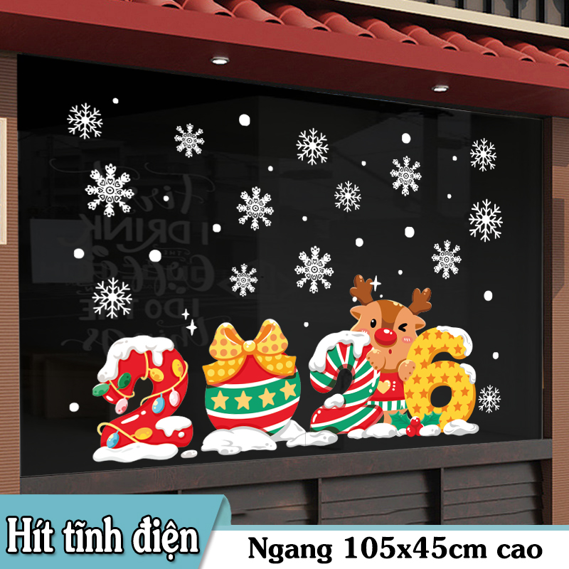 🎄 Decal Noel 2026 Số 2026 & Tuần Lộc Dễ Thương | Hít Tĩnh Điện | Khổ 50×70 – Trang Trí Cửa Kính Giáng Sinh Siêu Cute