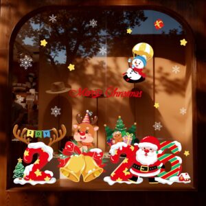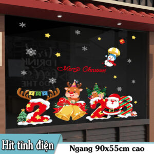 Decal Noel 2026 số 2026 kèm tuần lộc, ông già Noel, người tuyết – khổ 50×70, hít tĩnh điện dễ dán, giúp cửa kính nổi bật và lung linh suốt mùa Giáng Sinh.