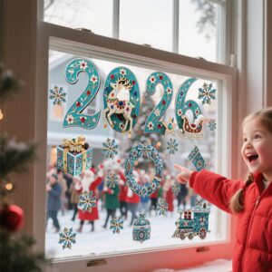 🎄 Decal Noel 2026 Xanh Ngọc Đính Đá – Hít Tĩnh Điện Cao Cấp, Chữ 2026 & Họa Tiết Hoa Văn Sang Trọng tại MingDecor