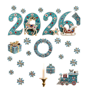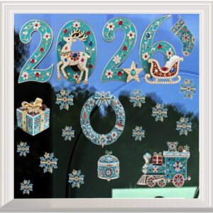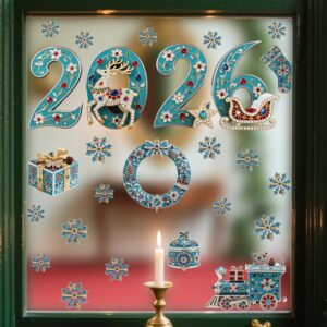Bộ chữ 2026 được tạo hình dạng Baroque mềm mại, kết hợp các hoa văn nhỏ đính đá nhiều màu sắc. Hình tuần lộc đính đá, xe trượt tuyết, ngôi sao và giày Noel đều được mô phỏng theo kiểu jewelry Christmas, giúp không gian của bạn nổi bật và sang trọng hơn bao giờ hết.
