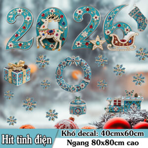 Decal Noel 2026 Xanh Ngọc Đính Đá là mẫu trang trí Noel lý tưởng cho những ai yêu thích vẻ đẹp quý phái, tinh xảo và cực kỳ sang trọng. Với sắc xanh ngọc đặc trưng, họa tiết hoa văn châu Âu và đá nhiều màu lấp lánh, sản phẩm hứa hẹn sẽ tạo điểm nhấn hoàn hảo cho cửa kính hoặc không gian trưng bày của bạn mùa Giáng Sinh 2026.