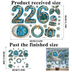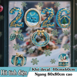 🎄 Decal Noel 2026 Xanh Ngọc Hoàng Gia – Hít Tĩnh Điện Cao Cấp, Chữ 2026 & Họa Tiết Vàng Sang Trọng tại MingDecor