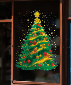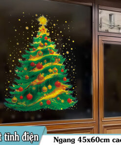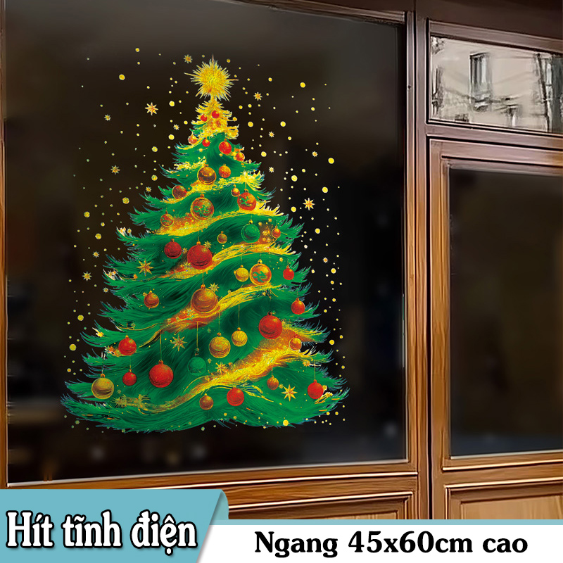 Decal Noel Cây Thông Hít Tĩnh Điện 45x60cm – Trang Trí Kính Rực Rỡ, Thấy Rõ 2 Mặt