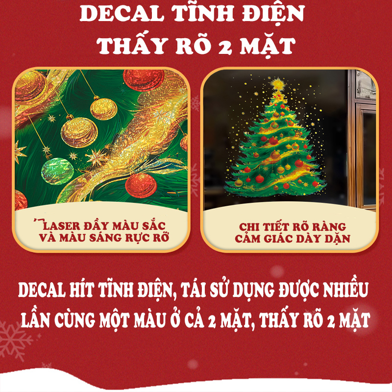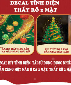 decal Noel hít tĩnh điện, decal trang trí Noel, decal dán kính cây thông, decal Noel 2 mặt, trang trí kính Giáng Sinh