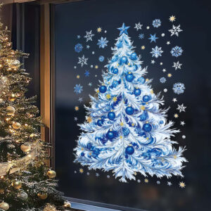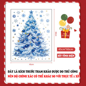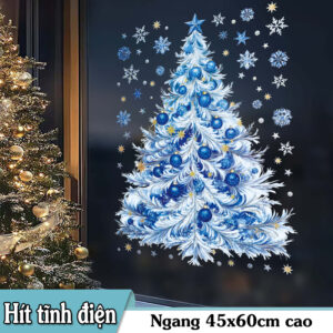 Trang trí không gian thật nổi bật cho mùa lễ hội với mẫu decal Noel hít tĩnh điện cây thông xanh dương – thiết kế sang trọng, hiện đại, thấy rõ cả 2 mặt, dễ dàng dán lên mọi bề mặt kính mà không cần keo, không lo bẩn tường hay để lại vết dính.