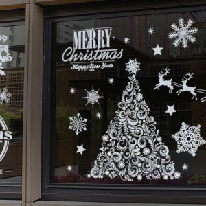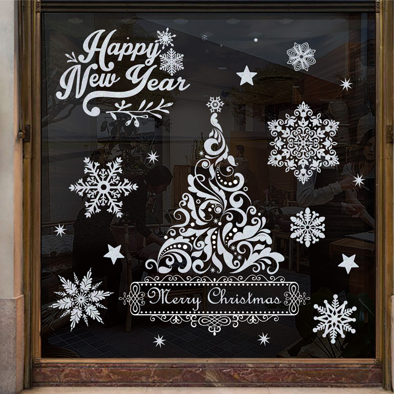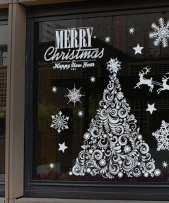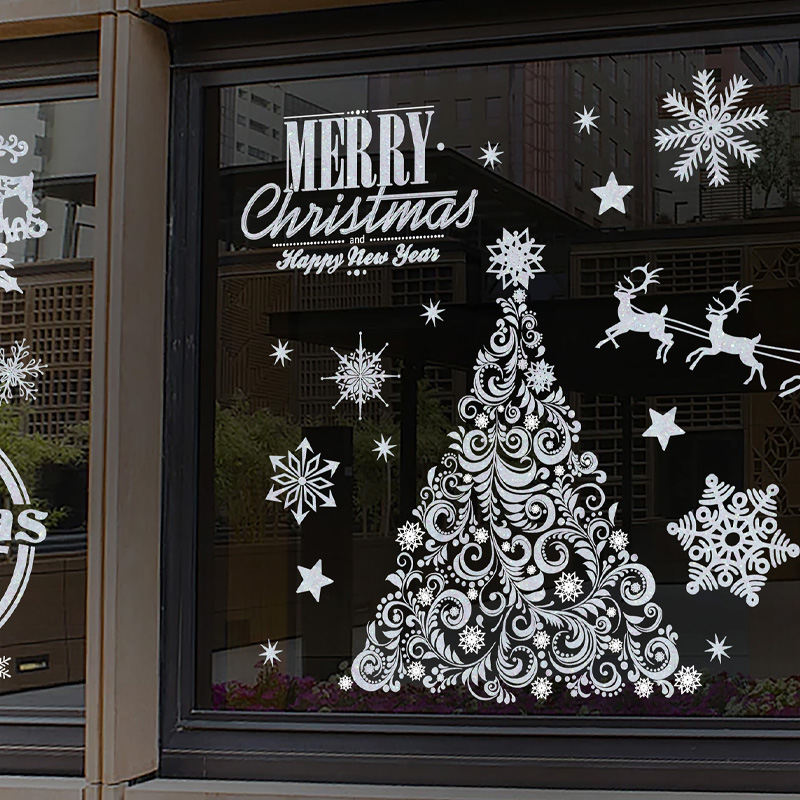 Decal Noel 2025, decal hít tĩnh điện, decal dán kính Noel, trang trí Giáng Sinh 2025, decal Merry Christmas, decal Giáng Sinh shop cafe, decal Noel không cần keo