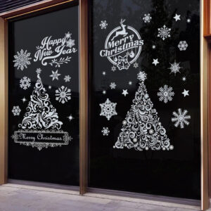 Decal Noel Hít Tĩnh Điện 2025 Bộ 4 Tấm Cây Thông, Quả Cầu Tuyết – Trang Trí Giáng Sinh Cửa Kính Cực Đẹp, Không Cần Keo