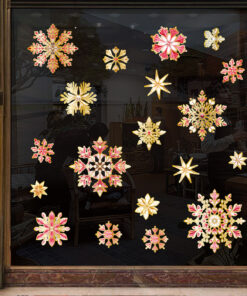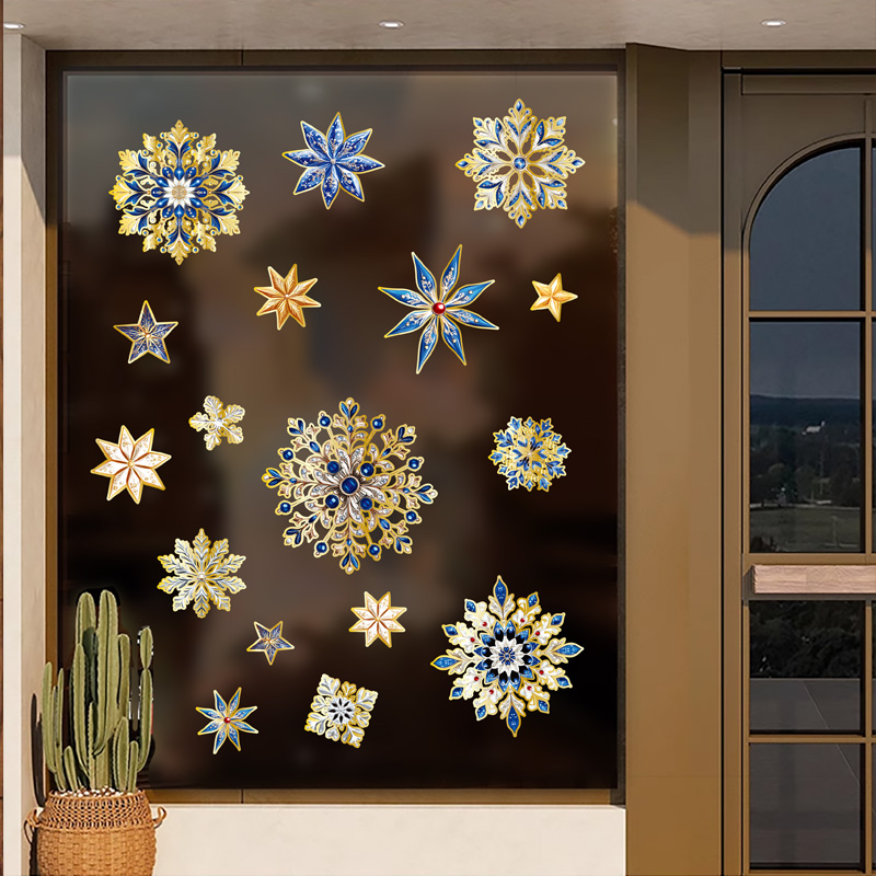Mang không khí Giáng Sinh tràn ngập ngôi nhà bạn với decal Noel hít tĩnh điện 2025. Bộ decal gồm nhiều họa tiết bông tuyết màu vàng và xanh sang trọng, tạo điểm nhấn lấp lánh trên cửa kính, cửa sổ, cửa hàng hay văn phòng. Với khả năng dán 2 mặt kính, sản phẩm giúp không gian thêm lung linh cả bên trong lẫn bên ngoài.