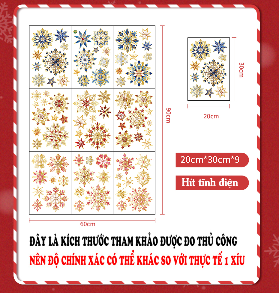 Decal Noel Hít Tĩnh Điện 2025 – Bông Tuyết Vàng & Xanh Trang Trí Hai Mặt Sang Trọng