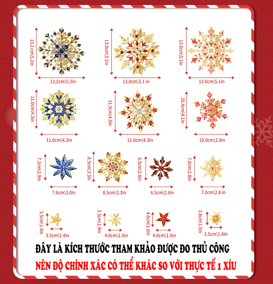Họa tiết bông tuyết đa dạng kích thước: từ 3,5cm – 13cm.