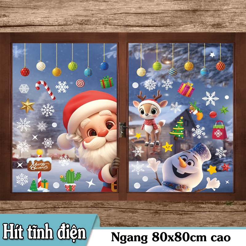 🎅 Decal Noel Hít Tĩnh Điện 2026 – Ông Già Noel & Người Tuyết Dễ Thương – Trang Trí Kính Cửa Hàng, Quán Cafe, Nhà Ở 🎄