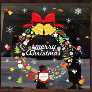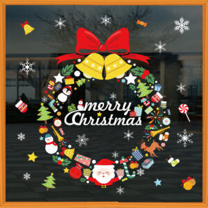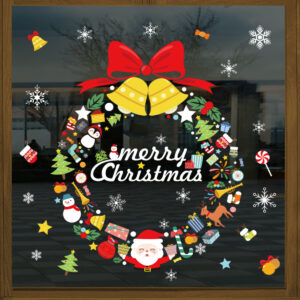 Decal Noel vòng nguyệt quế Merry Christmas hít tĩnh điện, dễ dán – không keo, khổ 45×60cm. Trang trí cửa kính, shop, quán café, nhà ở mùa Giáng Sinh đẹp nổi bật.