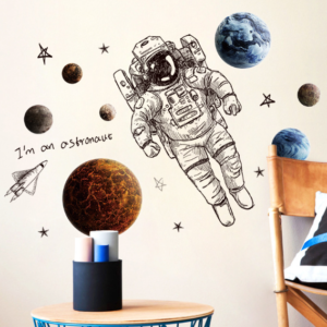 decal vũ trụ phi hành gia, decal trang trí phòng bé, decal dán tường không gian, decal dán tường phi hành gia, đề can vũ trụ cho bé