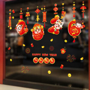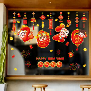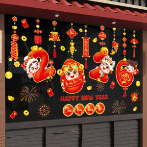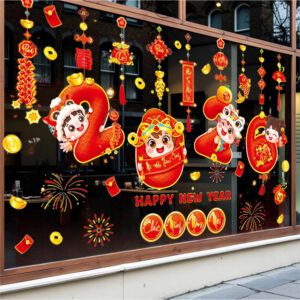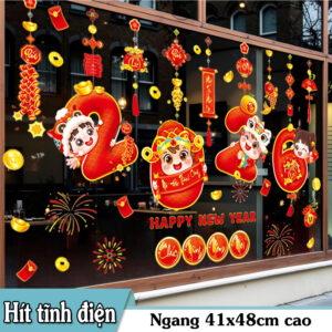 Mẫu decal không chỉ mang đến không khí Tết truyền thống mà còn tạo sự tươi vui, thu hút khách hàng từ xa – đặc biệt phù hợp với cửa kính lớn, mặt tiền kinh doanh.