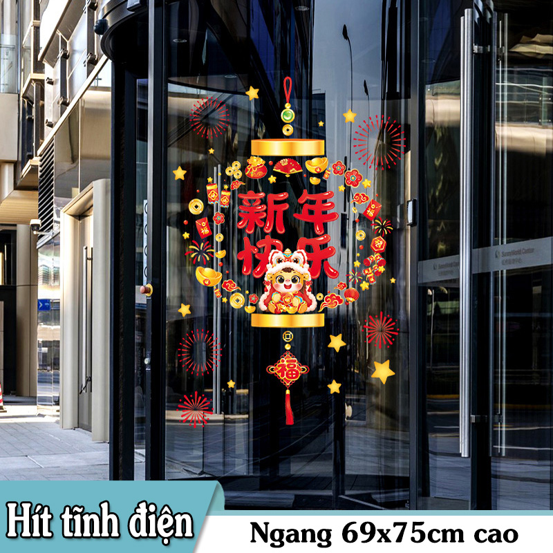 Sự kết hợp này khiến tổng thể decal trở nên cực kỳ bắt mắt, phù hợp với mọi không gian trang trí ngày Tết.