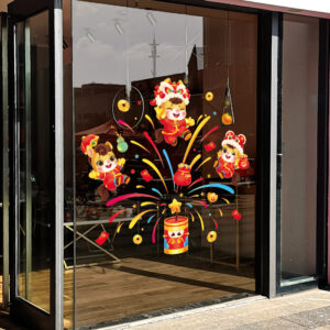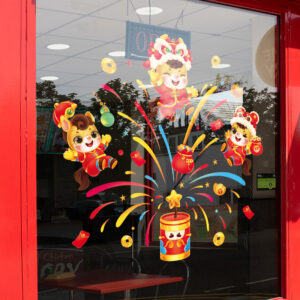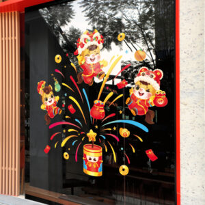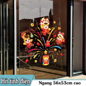 ⭐Decal Tết 2026 Hít Tĩnh Điện Bé Nhảy Mừng Pháo Hoa Trang Trí Cửa Kính – MingDecor
