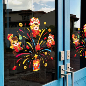Decal Tết 2026 hít tĩnh điện mẫu bé nhảy mừng pháo hoa là một trong những thiết kế nổi bật của MingDecor dành cho mùa Tết năm nay. Với hình ảnh các bé linh vật năng động, tung tăng nhảy múa bên hiệu ứng pháo hoa nhiều màu sắc, bộ decal tạo cảm giác vui tươi, rộn ràng và cực kỳ thu hút ánh nhìn khi trang trí lên cửa kính.