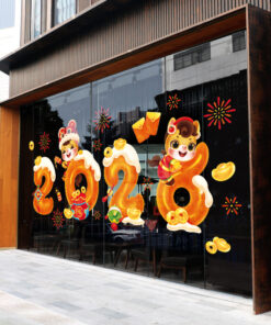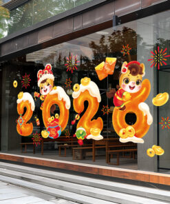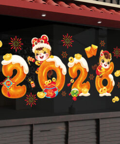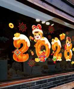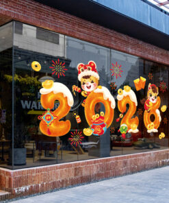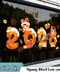 Decal Tết 2026 Hít Tĩnh Điện – Trang Trí Cửa Kính Bé Đội Lân – MingDecor