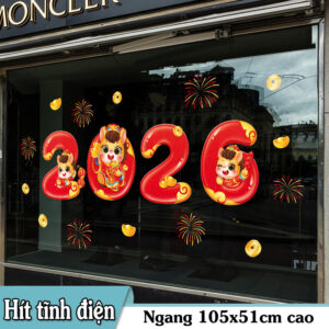 Decal Tết 2026 hít tĩnh điện MingDecor là mẫu trang trí không thể thiếu cho mùa Tết năm nay với phong cách thiết kế cực kỳ nổi bật. Bộ số 2026 được cách điệu dạng bóng đỏ mạ vàng, kết hợp họa tiết pháo hoa, vàng tài lộc và bé linh vật dễ thương mang ý nghĩa may mắn – thịnh vượng – phát tài đầu năm.