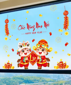 🧲 4. Chất liệu hít tĩnh điện MingDecor – Dán 10 giây, đẹp suốt mùa Tết