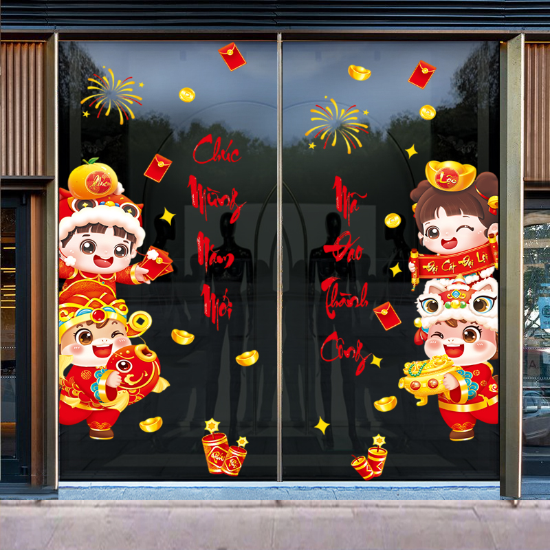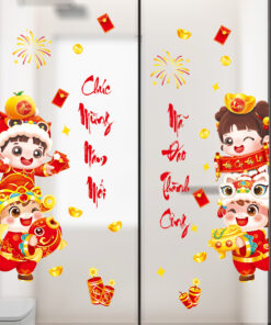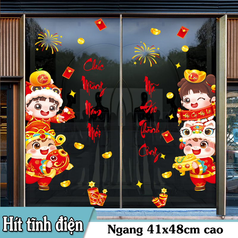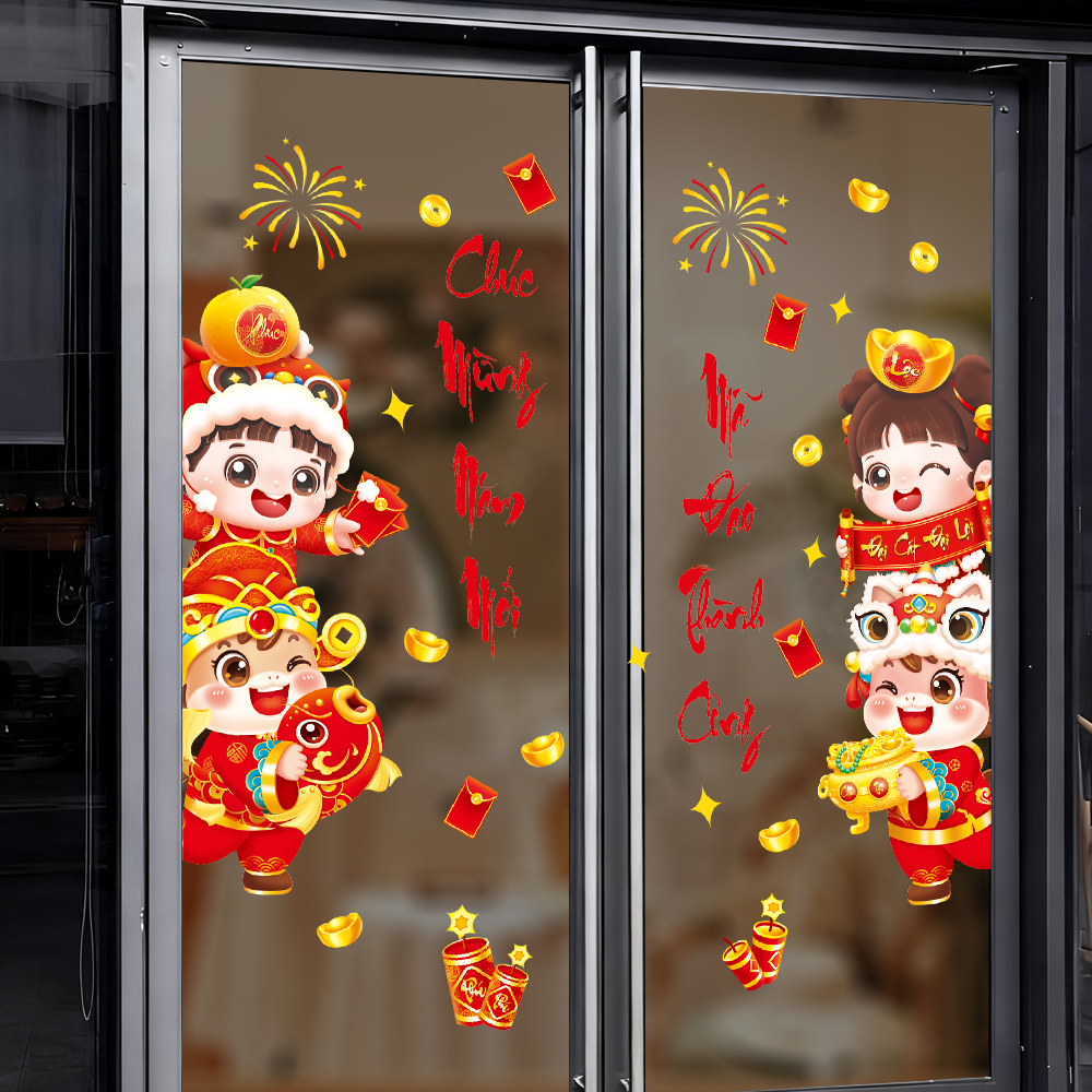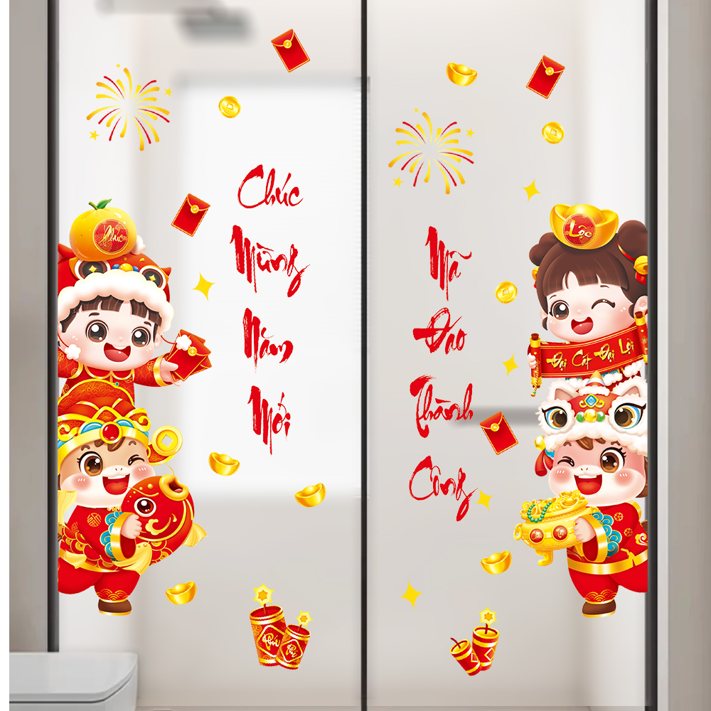 🧧 Decal Tết Bé Dễ Thương 2026 – Chúc Mừng Năm Mới, Mã Đáo Thành Công | Decal Tết Hít Tĩnh Điện | Khổ 60×90 cm – MingDecor