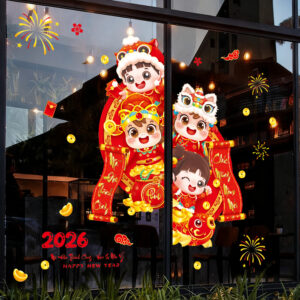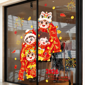 Mẫu Decal Tết Bé Mừng Xuân 2026 – Khổ 60×90 cm là một trong những thiết kế Tết chủ đạo mùa năm nay với phong cách hoạt hình cực kỳ dễ thương, màu sắc rực rỡ và bố cục sinh động. Sản phẩm mang đến không gian lễ hội đầy may mắn, năng lượng và niềm vui – rất phù hợp cho cửa kính quán café, trà sữa, nhà hàng, spa, shop thời trang, văn phòng và nhà ở.